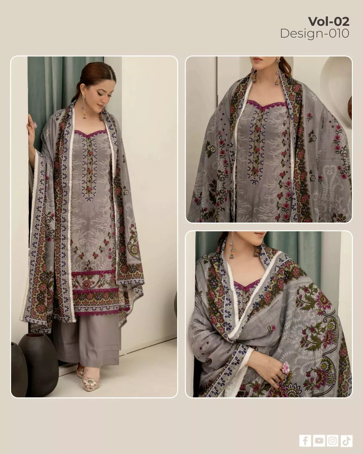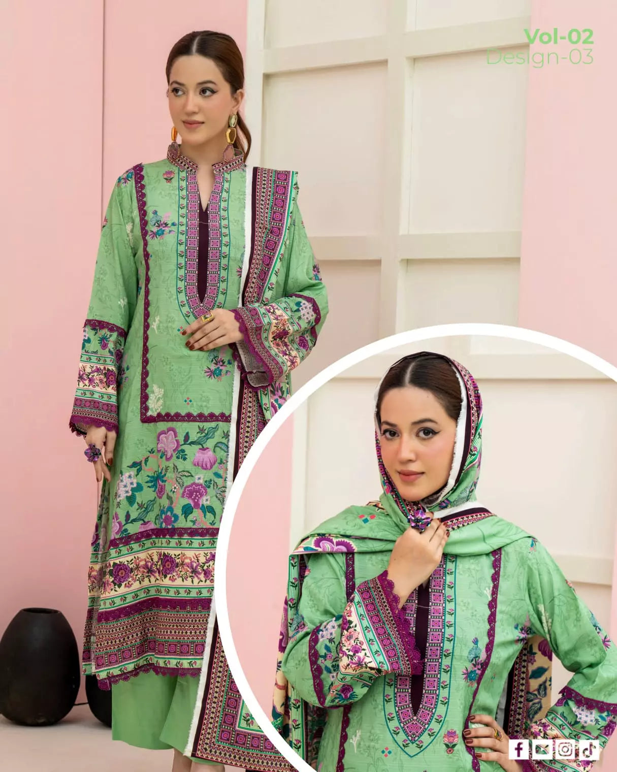 Experience the elegance of the Marooj Ethnic BanaDora Linen Printed Collection Vol-01 – a premium 3-piece unstitched ladies’ suit collection designed for style and comfort.